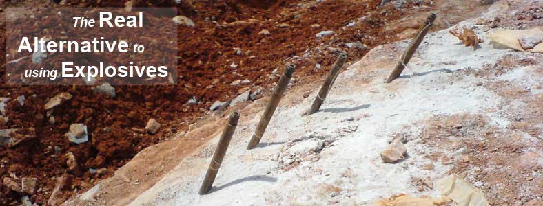 This is an advanced method used for Rock Cracking. Co2 Fracturing Cylinders are filled with liquid Co2 gas and is the primary element used for cracking the rock. This method is extremely safe and convenient as there are no explosives, harmful chemicals or large moving parts or debris. The principle applied in this system is that of Co2 Gas Expansion.